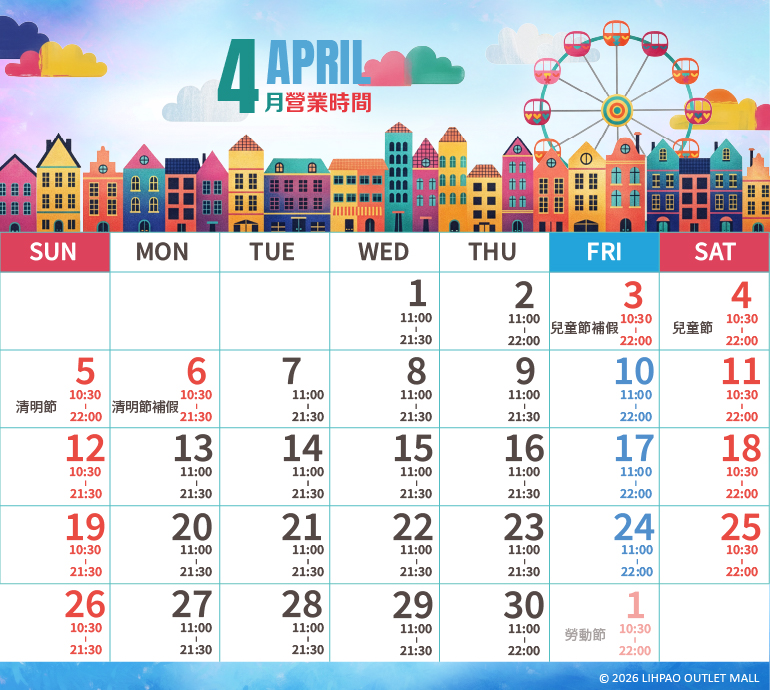 2026年4月行事曆